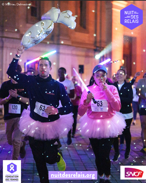 Créée en 2016 par La Fondation des Femmes, La Nuit des Relais est la course festive et inclusive de la solidarité, où chaque relais compte. Dans une ambiance chaleureuse, les équipes se relaient toute la soirée, accompagnées de musique, d’animations et de moments de partage.